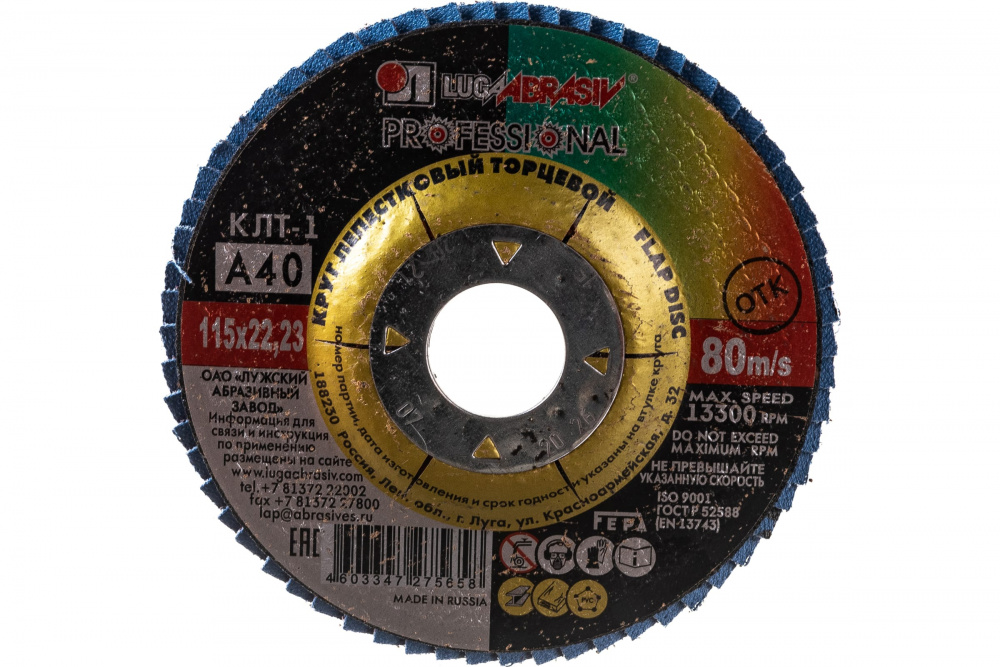 Абразив – электрокорунд, марка А 40. Зернистость по ГОСТ – 14А 40, зернистость по FEPA – P40.