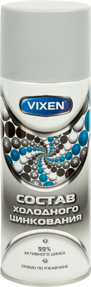 Состав холодного цинкования Vixen предназначен для ремонта и восстановления элементов из оцинкованного металла, а также защиты кузовных деталей от ржавчины. Формирует антикоррозийный защитный слой на металлической поверхности с помощью электрохимически активного цинка в составе. Применяется как самостоятельное покрытие или как противокоррозийная грунтовка перед окрашиванием эмалями.